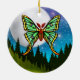Original fine art painting of a colourful Spanish Moon moth by nature artist Carolyn McFann of Two Purring Cats Studio printed on a quality ceramic ornament for Atlas and Luna moth fans.