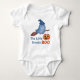 A cute family matching Halloween baby bodysuit to complement our Spooky Boo Trick or Treat Kids & Family Halloween Collection! This customisable design featuring a cute ghost sporting witch hat and a pumpkin shaped trick-or-treat basket and “The Little Spooky Boo” text in blue and orange is perfect for costume parties and neighbourhood trick or treating events. Order one for each member of your crew and make this Halloween unforgettable! Click on “personalise this template” to add your custom text and/or change the font style, size or colour. Feel free to message me for any enquiries, I will be happy to help!
