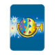 This design features our globe or earth on a stand. The globe is colored with striped pastel colors lining the globe. On the stripes are hearts colored with pastel colors. The blue backing represents the sky. The sky is exploding with colored stars bursting above the globe. These magnets are available in assorted styles and sizes.