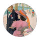 Artist:Joe Bowler | A man in a suit and a woman in a pink dress and hat standing by the shore of a lake