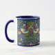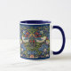 Coffee mug featuring William Morris' The Strawberry Thief with a bird taking strawberries.