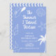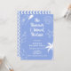 The Summer I Turned Sixteen sets the tone for a modern, minimalist sweet sixteen invitation in blue, with breezy brush script announcing a Beach Birthday Pool Party. Girly hand‑drawn doodles of seashells, a chic sun hat, starfish, a swaying palm tree, and a playful bikini frame the design, balancing whimsical charm with clean sophistication. The overall look is fresh, stylish, and celebratory — perfectly capturing the joy of a sun‑soaked milestone.