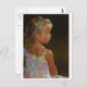 Dramatic portrait of a seated child in a flowered sundress, highlighted by a ray of sunlight. Original Photo digitally painted. Canvas texture embedded.