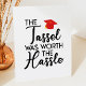 This is a 'the tassel was worth the hassle' graduation decoration sign with a red graduate cap.