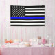 A Thin Blue Line symbolic US flag design on a display banner. A great gift idea for gatherings, memorial celebrations and remembrance occasions.
