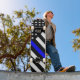 A Thin Blue Line symbolic black and white US flag design graphic. A great gift idea for gatherings, memorial celebrations and remembrance occasions.