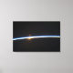 The thin line of Earth's atmosphere and the rising sun featured with horizon.