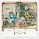The three Little Kittens at Home, popular vintage illlustration with cat #1 reading Mouse Tales, cat #2 playing the piano, and cat #3 playing the trumpet.