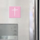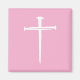 Simple design: three white nails interlaced to make the Christian Cross. Trendy pink aesthetic for her.