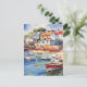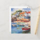 Beautiful water color image of boats in an English coastal harbor, perfect art to compliment your traditional message sending.