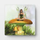 A sweet fairy, clad in leaf green, sits in contemplation on a magical toadstool in this original digital fantasy artwork by Jayne Wilson.