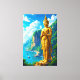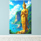 Unleash the spirit of Thailand with this stunning artwork. A majestic golden statue stands tall on a cliff, overlooking a peaceful coastline dotted with boats and framed by lush, tropical mountains. This image perfectly blends serene spirituality with the breathtaking beauty of nature. It's a powerful and calming piece that will add a touch of worldly elegance to any space.