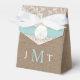 Celebrate in style with these elegant and very trendy wedding favour boxes. The design features a sand dollar with turquoise ribbon on a rustic burlap and vintage white lace effect background which is perfect for any beach themed marriage celebration. The design is easy to personalise with your own monogram initials and your family and friends will be thrilled when they receive this fabulous favour boxes. Matching items can be found in the collection.
