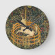Clock featuring the mediaeval tapestry The Unicorn in Captivity (1495-1505). The seventh tapestry in The Unicorn Tapestries—also known as The Unicorn Rests in a Garden—shows a white unicorn with a blue collar sitting inside a fence. Green grass and beautiful flowers surround the unicorn. A fantastic gift for mediaeval art collectors and fantasy lovers!