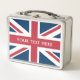 Metal lunch box with The Union Jack flag design. This United Kingdom flag design is a great way to show you are proud to be British.