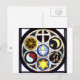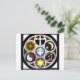 The Rehnberg Memorial Window was created by Rockford, Illinois artist, Frank Houtkamp in 1974 for the Unitarian Universalist Church in Rockford, on commission from the family of Axel F. Rehnberg (1883-1966), an inventor and co-founder of the Rehnberg-Jacobsen Manufacturing Co. Symbols beginning on Top and proceeding counter clockwise: Celtic Cross –Christianity Eight-Spoked Wheel-Buddhism Yin & Yang-Taoism Star of David-Judaism Sign of OM-Hinduism Star & Crescent-Islam Chalice (centre)- Unitarian Universalism The interlocking six circular representation of the six major religions indicated that they all share the same quest for meaning. The centre symbol of the flaming chalice represent’s Unitarian Universalism’s willingness to accept insight from all these faith traditions, as well as a determination to explore all new clams to truth and understanding. “One of the less talked about advantages to living in this universe is that if you draw a circle and six other circles identical to it on each of its 60° radii that same distance from its centre, the six will all invariably lie the same distance from each other. Simple mathematics offers various reasons and even “proof” of this fact based on equilateral triangles, parallel lines, etc., but these reasons are only tools to understanding—related phenomena– but equally mysterious and improvable. Still, there is an underlying truth within them without which they could not exist. Symbolically depicted in the six circles are six traditional paths humans have taken to experience and recall the truth. Despite their differences, they are all bound by the laws of the universe. Like the interlocking circles, these laws are overlapping, infinite, and elusive. Each is a mirror image of the centre, but each encompasses infinite variety.”-Frank Houtkamp Creator of Rehnberg Window