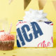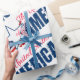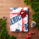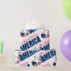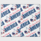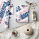 American flag in the shape of the USA map, white star with blue outline, red and blue text The Unites States Of America. The Independence Day and other occasions patriotic gifts and souvenirs for anyone. Wrapping paper. Customisable. You can change the image. Enjoy!