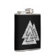 The valknut, Old Norse valr, "slain warriors" and knut, "knot" has three interlocked triangles. This viking symbol has been illustrated in white, with a distressed look on a black background. This was a part of Norse mythology and used by Vikings and Norse warriors.