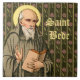 Servant of God, Venerable, Blessed, Saint-- in the modern process of canonisation, a candidate for sainthood rises through the ranks. However, the epithet ‘Venerable’ given to St. Bede has less to do with process than with the esteem with which he was regarded by his near contemporaries. Born in 672 or 673 of a noble house in North East England, Bede, whose name in Old English may mean ‘prayer’, was sent to the Benedictine monastery of St. Peter at Monkwearmouth at the age of seven to be educated perhaps in preparation for the religious life. Though Bede moved to St. Paul’s at Jarrow, the second house of the double monastery, he never left the Benedictine life. At Jarrow, he lived out his days as a priest in prayer, in study, and, above all, at writing. He died of natural causes in 735. + Today, Bede is best known for his Ecclesiastical History of the English People which has earned him the title of ‘Father of English History.’ However, he was a polymath. A skilled linguist and translator, he made the writings of the Early Church Fathers accessible in English. He wrote Chronicles, Biblical commentaries, lives of the saints, grammars, and homilies. His interest in computus (the dating of historical and ecclesiastical events especially Easter) popularised the B.C./A.D. system still in use today. He even wrote poetry in both Latin and vernacular English. For his body of theological works, Bede was declared a Doctor of the Church in 1899, the only native-born Englishman to hold the title. + The image here is a simple one: Garbed in the loose, cowled, Benedictine habit with its typically long, wide sleeves, a bald and grey-bearded Bede raises his right hand in a speaking gesture and holds an open book from which he preaches in his left. + St. Bede the Venerable is patron of lectors. + Feast: May 25 + Image Credit (P 008): Antique image of S[t] Bede. The Venerable. C[onfessor] from a late 19th-century devotional print in chromoxylography, originally published by Friedrich Pustet, Regensburg, New York, and Cincinnati. From the designer’s private collection of religious ephemera.