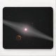 The view from the vicinity of a hypothetical terrestrial planet and moon orbiting a red dwarf star featured by artist.