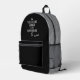 This volleyball themed backpack for girls features a the phrase, "The volleyball court is my happy place" in mixed typography and customisable name in a signature style font - the top (zipper portion) of the backpack is accented with a text pattern in white that reads "The volleyball court is my happy place" with tiny heart outlines (pattern can be deleted, if desired) - you can customise the backpack's colours, currently black & grey - by katz_d_zynes