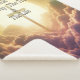 Golden cross among fluffy clouds with typography design.