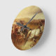 I ordered a small size of Tea Time Green & White Kitchen clock. It's just so cute and matches my kitchen decor!! The picture quality is better than I thought considering most of online orders do not meet buyers' expectations. It weighs only less than a pound. Excellent printing. You are not going to be embarrassed when you give this to your family and friends for a gift. I have failed many times on online orders for poor quality once i received them, but this one surprised me!!