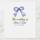 The wedding of gold navy blue bow couple name wine label