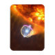 The white dwarf star in V407 Cygni, shown here in an artist's concept, went nova in 2010. Scientists think the outburst primarily emitted gamma rays (magenta) as the blast wave ploughed through the gas-rich environment near the system's red giant star.
