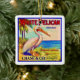The white pelican is such an admirable bird. We found this vintage, retro fruit crate label featuring him and repurposed the label on a ceramic ornament.