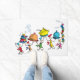 This fantastic illustration captures the pure joy of the Whos of Whoville preparing their holiday banquet! Five Whos, dressed in festive, colorful aprons and hats, march in a cheerful procession, gleefully balancing massive, colorful loads, including a huge yellow tureen, oversized serving domes, and dangerously tall stacks of small, brightly colored bowls. This whimsical scene perfectly embodies the chaotic but heartwarming spirit of the Whos' Christmas celebration!