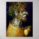 These works form a distinct category from his other productions. He was a conventional court painter of portraits for three Holy Roman emperors in Vienna and Prague, also producing religious subjects and, among other things, a series of coloured drawings of exotic animals in the imperial menagerie. He specialised in grotesque symbolical compositions of fruits, animals, landscapes, or various inanimate objects arranged into human forms.[1] The still-life portraits were clearly partly intended as whimsical curiosities to amuse the court, but critics have speculated as the degree of serious engagement with Renaissance Neo-Platonism or other intellectual currents that they have. Quote:Wikipedia