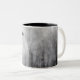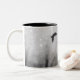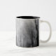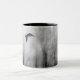 A lone blackbird flies through the forest in winter as the snow gently falls around her on this pretty coffee mug.