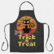 The design features a captivating image of a black cat with large, mesmerising eyes perched on a witch broomstick. The feline soars gracefully across a vibrant full moon, accompanied by a trail of bats in the background. Underneath the broomstick, the words "Trick or Treat" add a playful touch, while a central spider accentuates the spooky atmosphere.