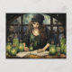 A witch reads from her spell book as she makes herbal healing potions AI generated art