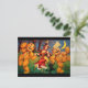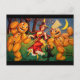 Surprise your friends with a funny vintage Halloween card featuring a witch dancing with pumpkin characters and her cat.
