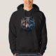 a black hoodie featuring a striking graphic of a wolf's face on the front. The wolf's detailed fur is illustrated in shades of grey and white, giving it a lifelike appearance. The wolf's eyes have an intense, focused gaze, adding to the overall fierce and majestic vibe of the design. The hoodie itself appears comfortable and casual, making it suitable for everyday wear, while the wolf graphic gives it a bold, statement-making edge.
