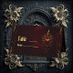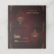 The wonderful beautiful art of gothic elegance. Romantic design with a central motif of a burning candle set within a heart-shaped frame. The candle is surrounded by intricate, golden, spider-like branches, and the heart is adorned with red jewels. The background is a deep crimson, and the image is framed by ornate, gold scrollwork with dripping red accents. The overall mood is one of gothic elegance and mystery.