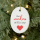 White and red oval ornament with words "The Wonders of His Love." A meaningful and festive addition to your Christmas tree.