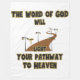 This fleece blanket design has a kapsalon condensed print font with black letters tan outline displaying the phrase "The Word Of God Will Light Your Pathway To Heaven” with a collection of street light along the pathway plus a sign that displays the word Heaven point down the pathway in this faith based bible theme. This Blanket is made from 100% buttery soft and cosy polyester fleece with edge-to-edge vibrant full colour sublimation printing and double edge stitching with a off-white coloured back machine washable.