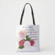 Beautiful inspirational tote bag with a printed image of painted red and white roses. This mug has the Scripture of Isaiah 40:8. The grass withers, flowers fade, but the word of God will stand forever.