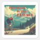 It's not the end game, it's not the race result. The reward is the journey, the training. This design is in the style of a vintage travel poster and is a cyclist in the mountains.
