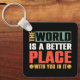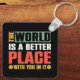 The key chain is made of metal and really sturdy. The flower design is really cheerful. The logo and colors are clear and crisp!