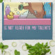 A kitchen towel or tea towel to celebrate an underappreciated genius, featuring a groundhog singing into the soap while stood in a pink bathtub, surrounded by bubbles and a stunned rubber duck. With tasteful starfish and shell shower curtain. The editable text reads "THE WORLD IS NOT READY FOR MY TALENTS", change to another caption if preferred, by clicking "Personalise this template".