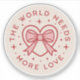 The world needs more love kindness quotes pink and red coquette preppy demure girly heart with bow aesthetic Christmas Valentine's Day round sticker decor.