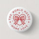 The world needs more love kindness quotes pink and red coquette preppy girly heart with bow aesthetic Christmas Valentine's Day button badge pins outfit accessory gift.