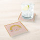 Personalize this teacher appreciation coaster with their name. It features a boho pencil, dot and hearts in matching colors on a pink background and the saying 'the world's best teacher'.
