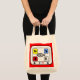 The printing came out very well, better than I had anticipated. The natural color fabric is sturdy with strong seams and comfortable handles. This tote fits easily over my shoulder. As it is filled, the bottom flattens out--very cool! I would buy this product again. This grocery tote holds a lot of groceries! The image quality was very good. The colors were a little darker than I had expected. The darkness may have been due to printing on a natural color fabric rather than on white. The cat design is attractively centered on the tote. The spirit of the design is very lively, just as it appears on the Zazzle website.