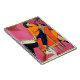 Artist:Morgan Kane | A man is lounging in a bright red chair reading the newspaper, and a woman is sitting on the arm