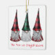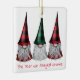 Three Scandinavian Gnomes dressed in the Christmas Buffalo Plaid. Text can be personalised.